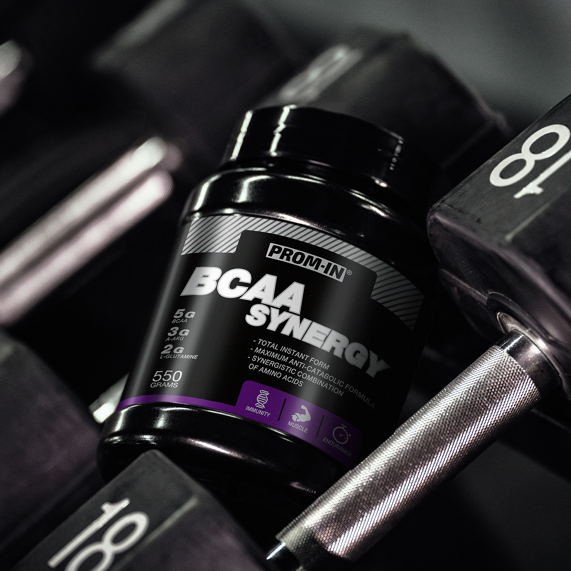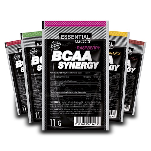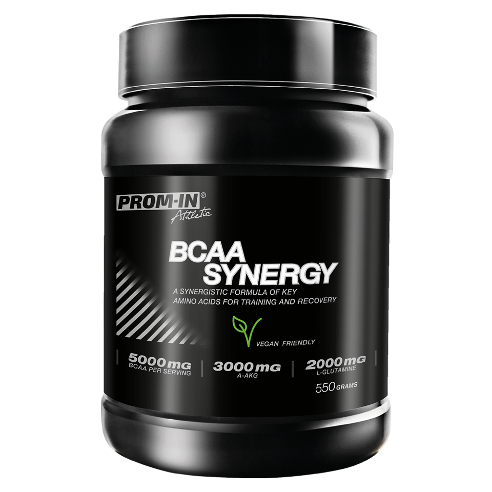 V predchádzajúcom odseku sme sa zoznámili s aminokyselinami a dostali sme sa k trom z nich, leucínu, izoleucínu a valínu, alebo tiež BCAA, ktoré tvoria základ produktu BCAA SYNERGY. V tomto produkte sú tieto zastúpené v pomere 2:1:1, a javí sa ako najvhodnejšie, ak sa užívajú na lačný žalúdok. Pomer 4:1:1 je vhodný na užívanie spolu s jedlom (kvôli zohľadneniu Wolfovho zákona nadbytku esenciálnych aminokyselín), ak je požiadavka na zvýšený príjem leucínu. BCAA sú v svalových vláknach zastúpené 35% zo všetkých esenciálnych aminokyselín a sú nevyhnutné pre ich rast. Okrem toho slúžia tiež ako významný energetický zdroj pre svaly počas fyzického výkonu. Pri tréningu teda svaly spotrebúvajú vlastné BCAA a menia ich na energiu. Pokiaľ užijete BCAA pred tréningom, dodáte telu potrebný zdroj energie a ochránite tak svoju svalovú hmotu pred degradáciou. Veľmi vhodné je potom užiť BCAA po tréningu, lebo tieto aminokyseliny sa naozaj stávajú stavebnými kameňmi bielkovín a sú dôležité pre naštartovanie svalového rastu.