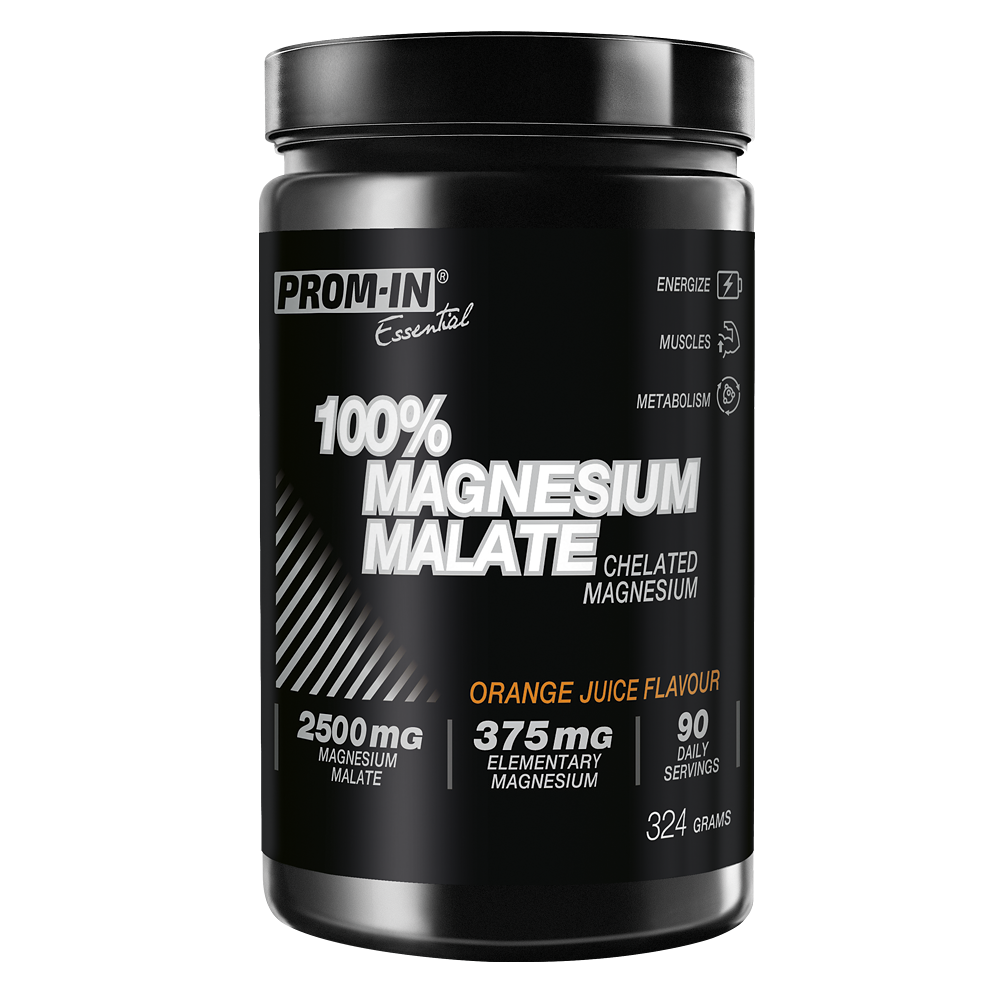 PROM-IN® 100% Magnesium Malate – organická zlúčenina horčíku pre lepší výkon a regeneráciu. Je to doplnok výživy v prášku so sladidlami. Horčík prispieva k zníženiu vyčerpania a únavy a tiež k správnej látkovej premene dôležitej pre tvorbu energie.