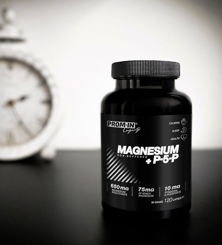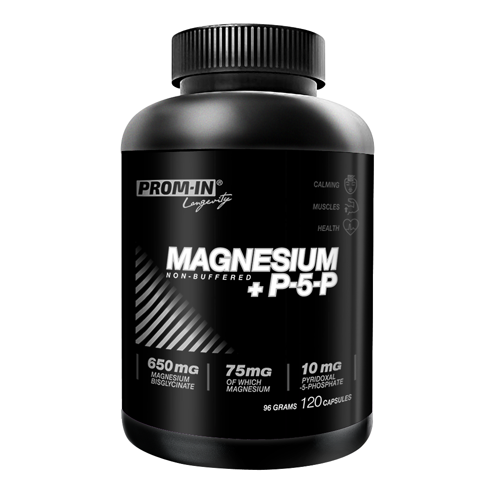 Pozn: Relaxačný efekt a pozitívny anxiolytický (redukcia úzkosti) efekt P5P je hlavným dôvodom pre vytvorenie produktu Magnesium + P5P v línii PROM-IN® Longevity.