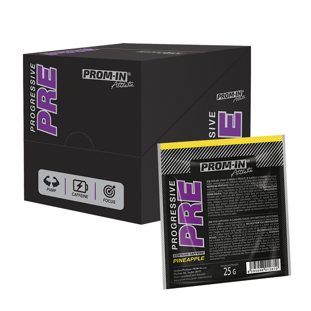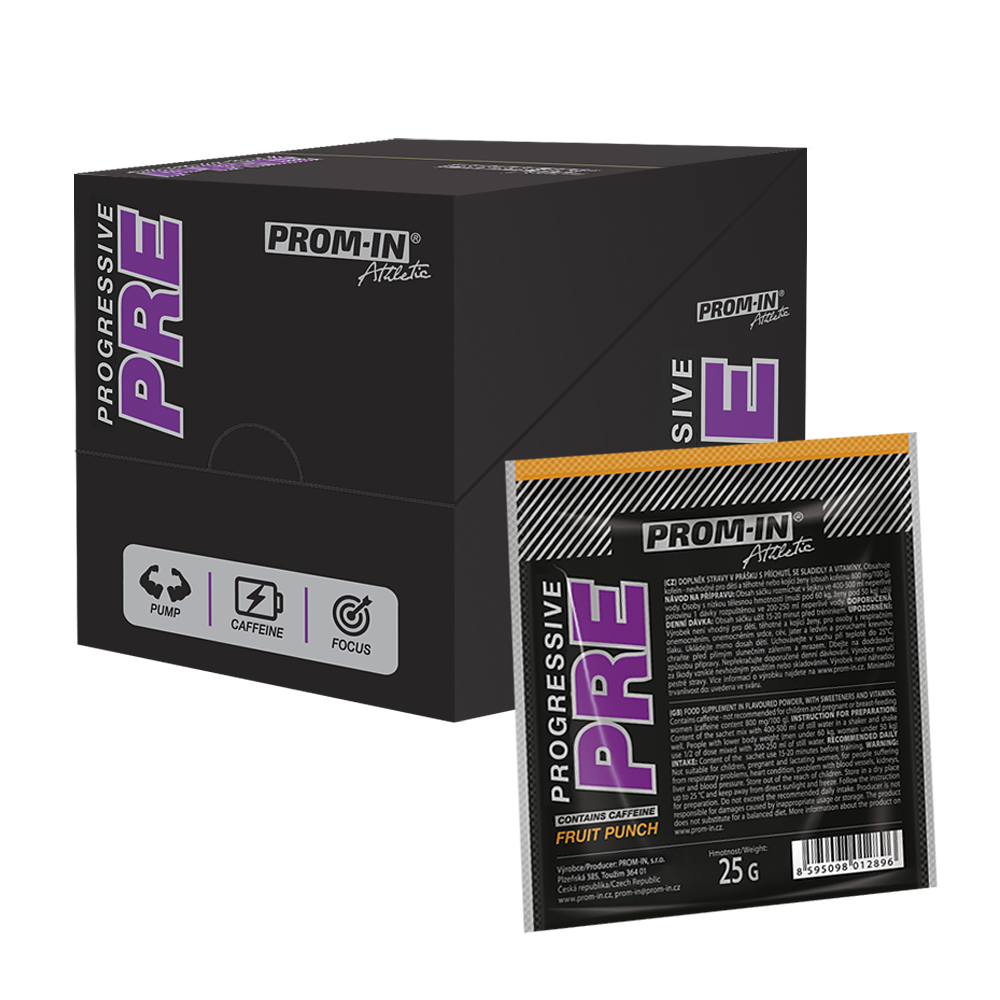 Progressive Pre predstavuje kombináciu ingrediencií užívaných pred tréningom. Je vhodný pre športovcov pri zvýšenej fyzickej záťaži. Nakopnite sa pred výkonom prémiovou predtrénigovkou s kofeínom, extraktom zo zeleného čaju a ďalšími stimulantmi. Progressive Pre je výživový doplnok v prášku s vitamínmi, sladidlami a kofeínom.